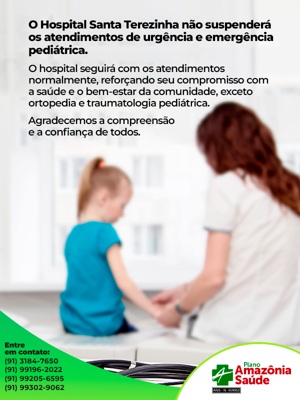 Informamos nossa extensão de Rede Credenciada na modalidade Atenção Pediátrica, conforme segue: Hospital Santa Terezinha, situado à Avenida Magalhães Barata, nº 277, Bairro Nazaré, Belém-Pa